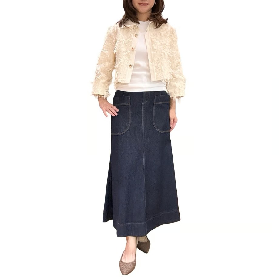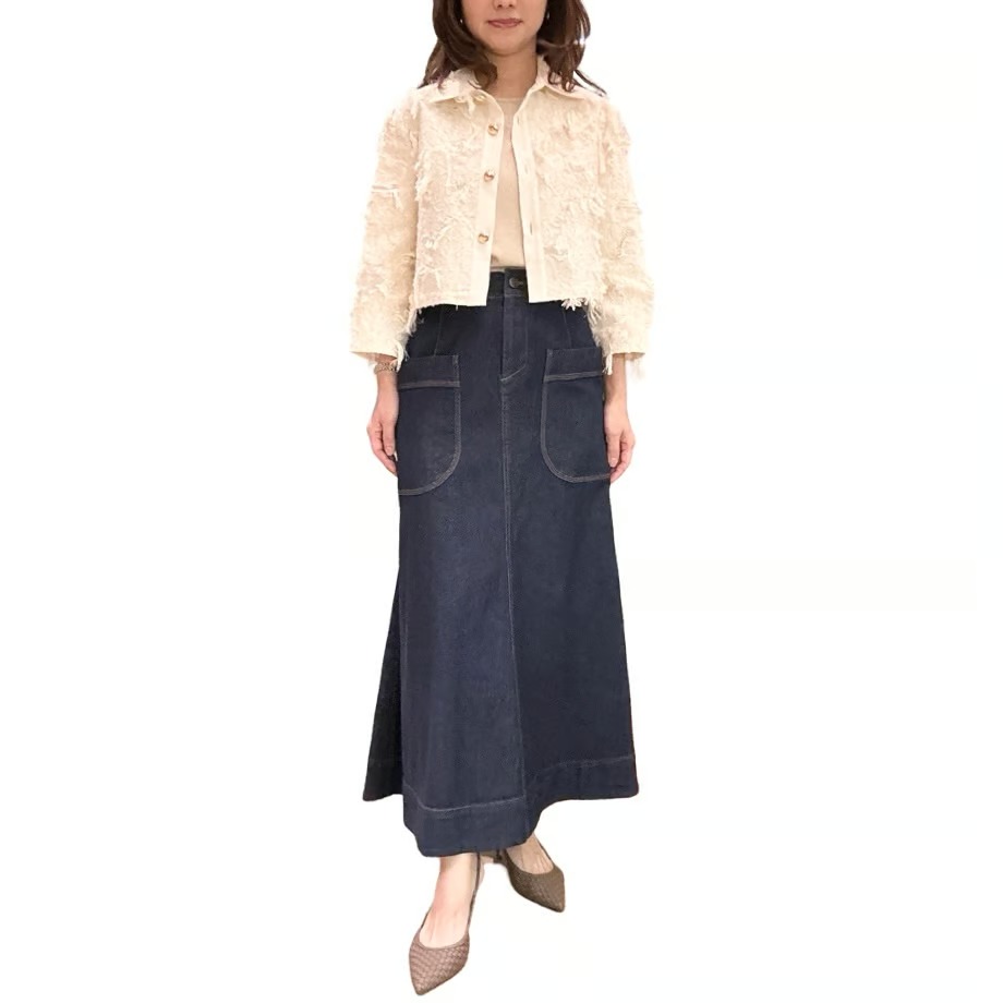Gジャンがわりに、カジュアルなスカートと合わせてスニーカーを履いてもお洒落です✨