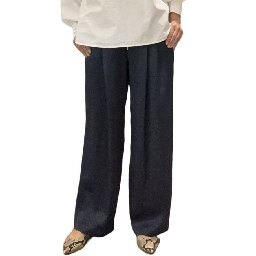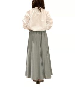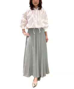 シャリ感がある素材なので、パーカーやTシャツと合わせてカジュアルな着こなしもOK