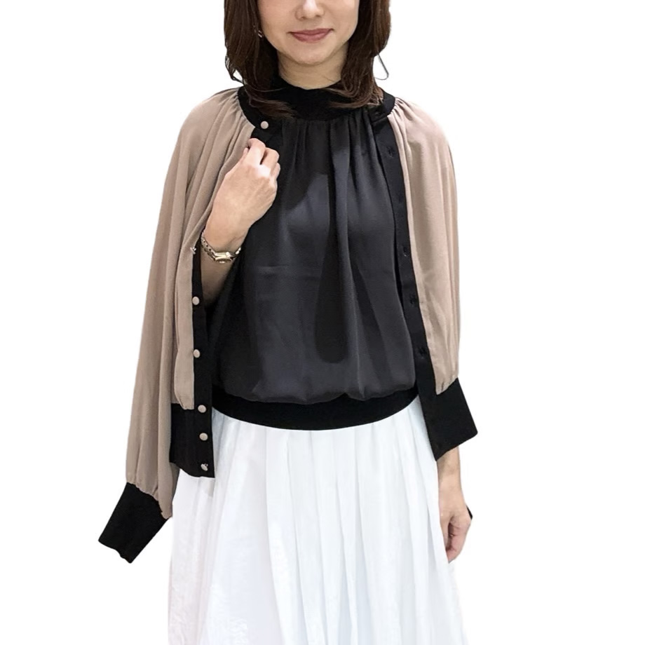 カジュアルなボトムでも、こちらのブラウスを合わせるとワンランク上のコーデを楽しめます🎵