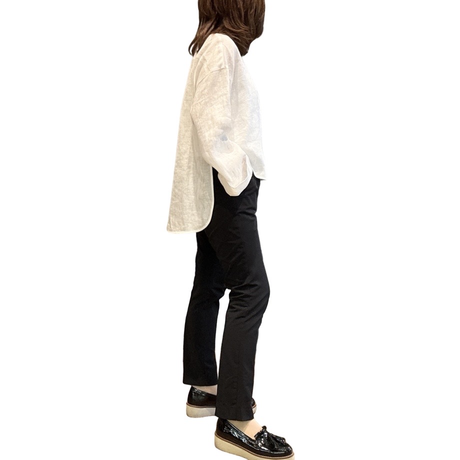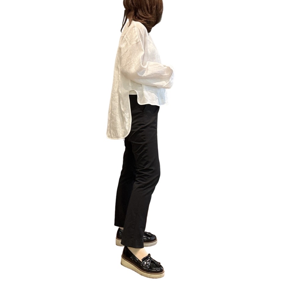 前後の着丈差がしっかりあり、前は軽めな感じなのでワイドパンツとの相性も抜群です🙆♀️