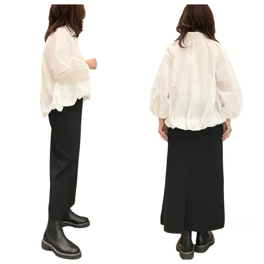 細身のスカート、ボリュームスカート、細身パンツ、ワイドパンツ…どんなボトムとでもよく合います😊