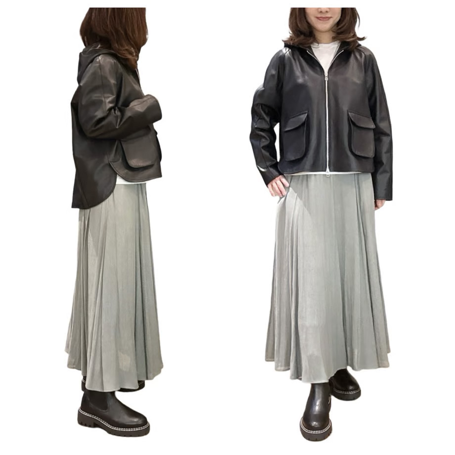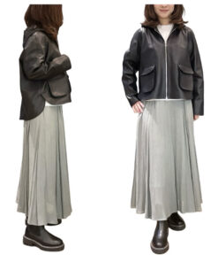 前後の着丈差があり、スカートとパンツのどちらでもよく合います🙆♀️