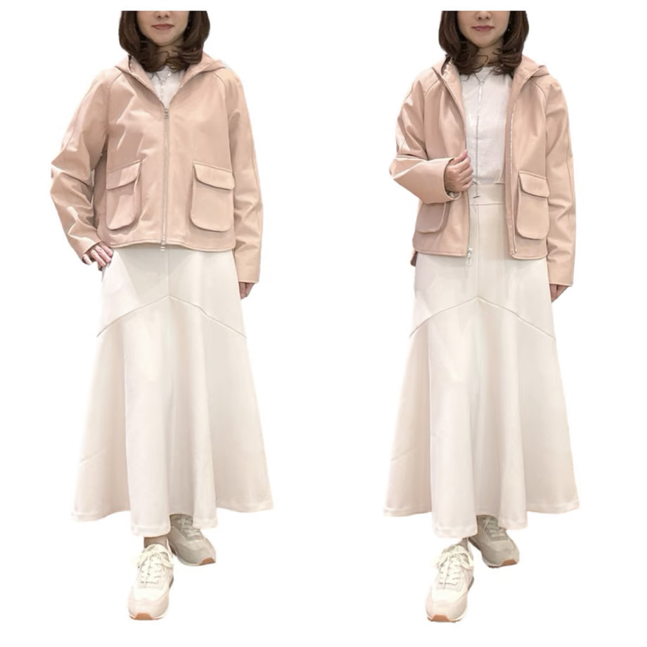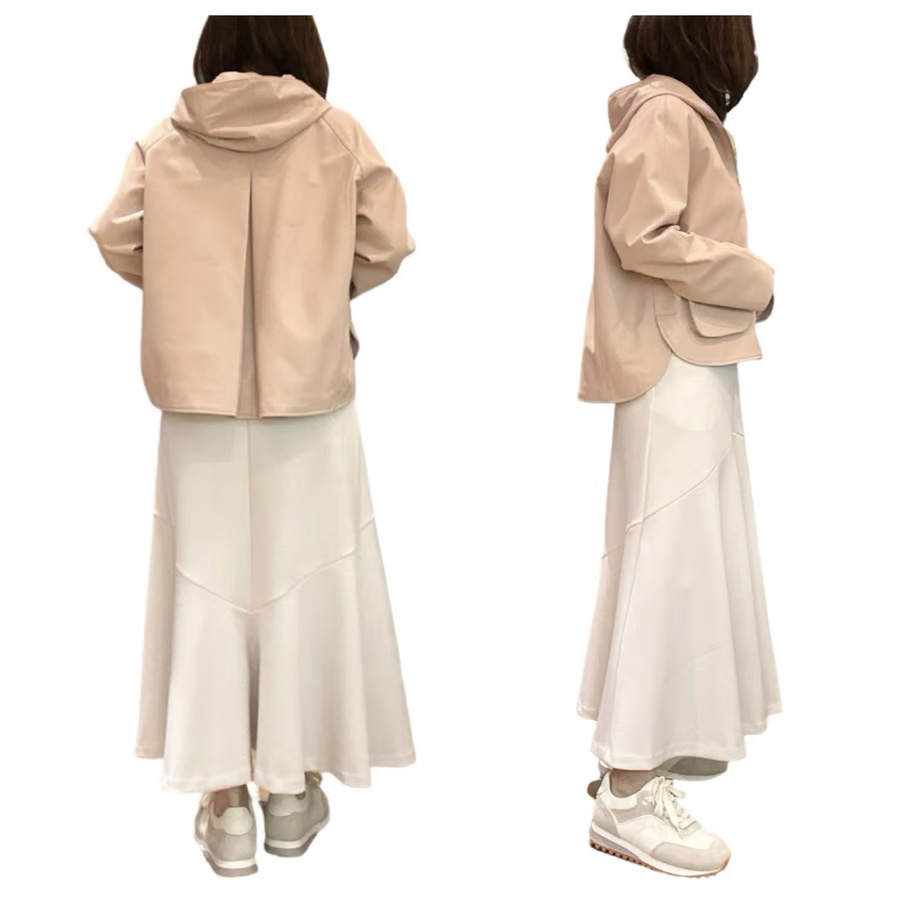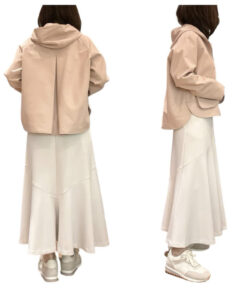 前後の着丈差があり、スカートとパンツのどちらでもよく合います🙆♀️